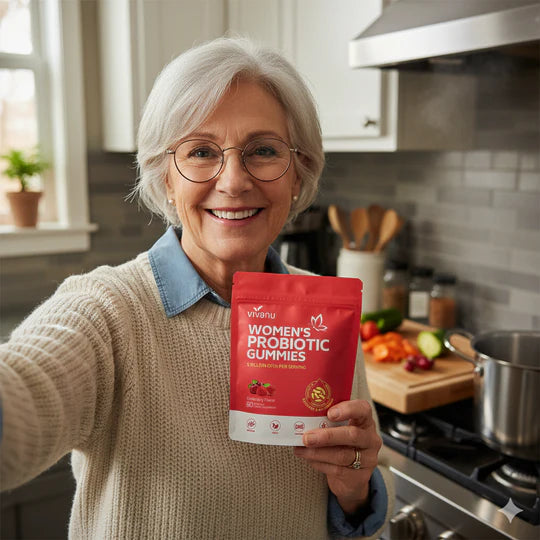 Det är där våra Tranbär Probiotiska gummies skiljer sig från mängden. Till skillnad från generiska probiotika är dessa speciellt framtagna för kvinnor i 40-, 50-årsåldern och äldre – de hjälper din kropp att återställa balansen och bli redo för fertilitet.